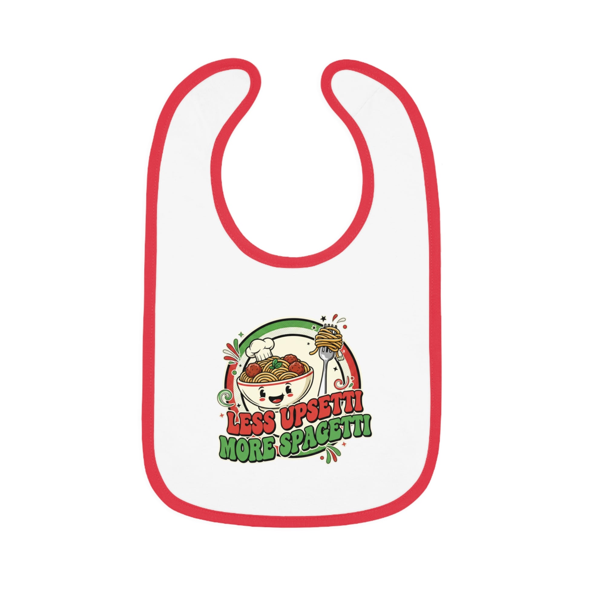Cute Baby Bib - "Less Upsetti, More Spaghetti" Contrast Trim Jersey
