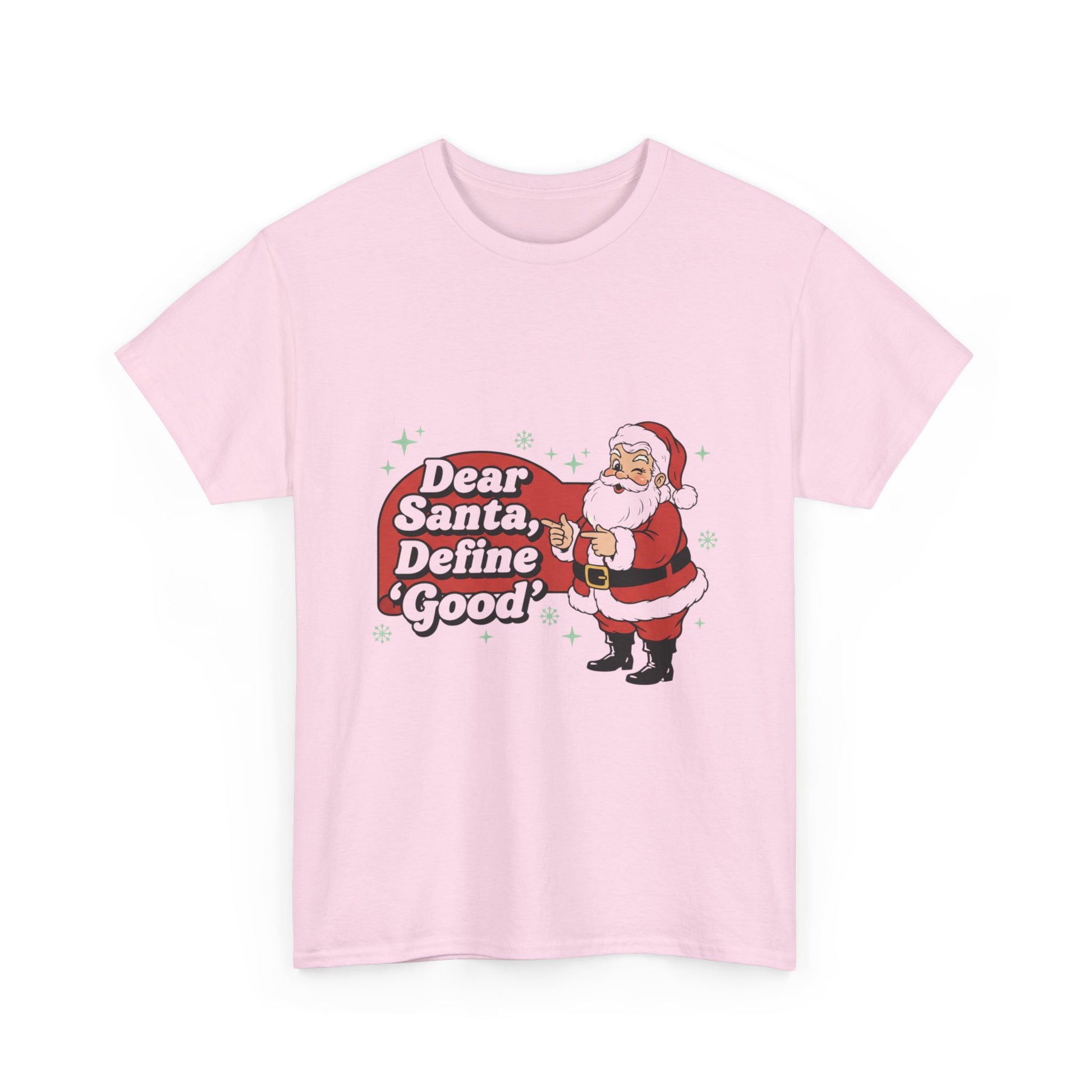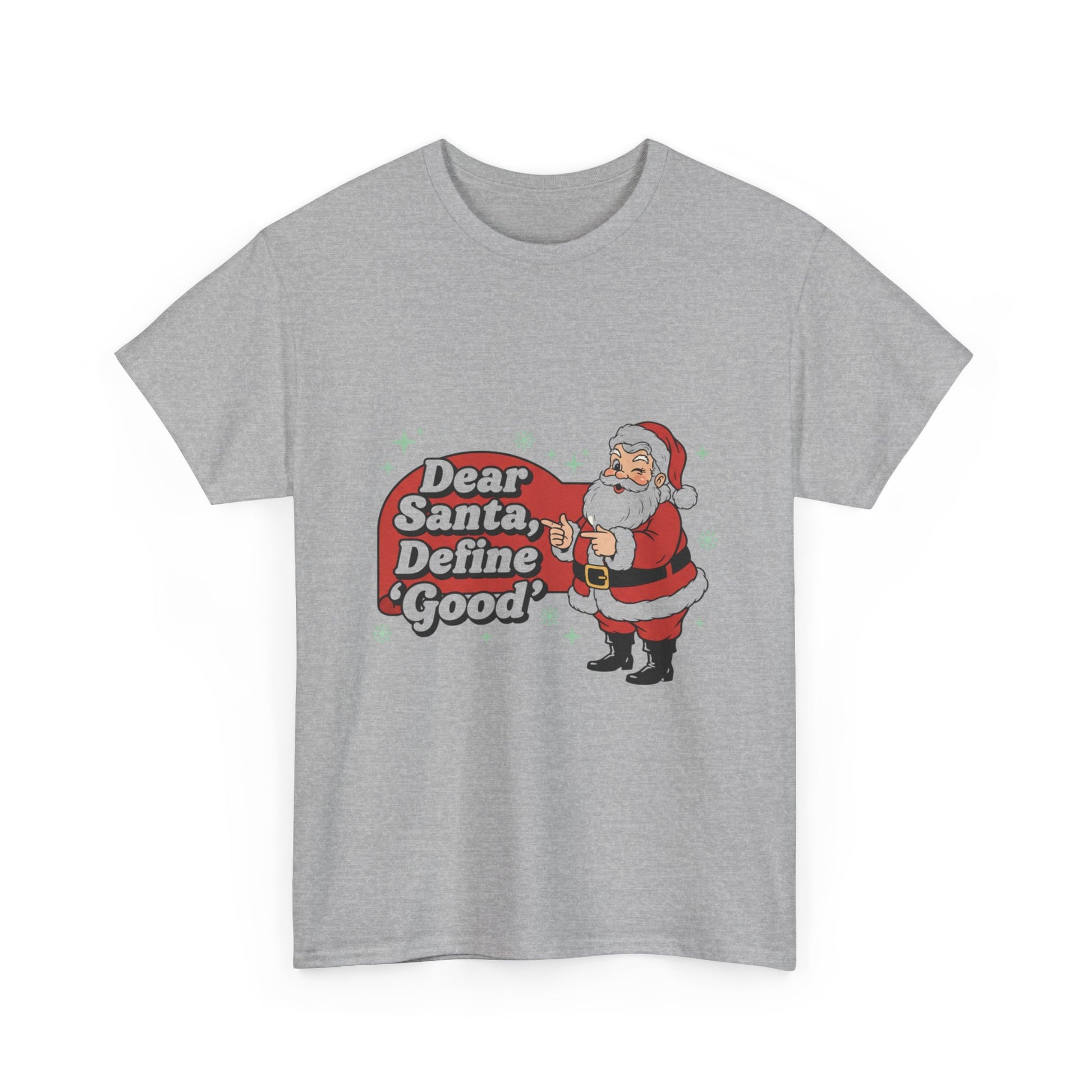 Funny Santa Tee - "Dear Santa, Define Good" - Unisex Heavy Cotton