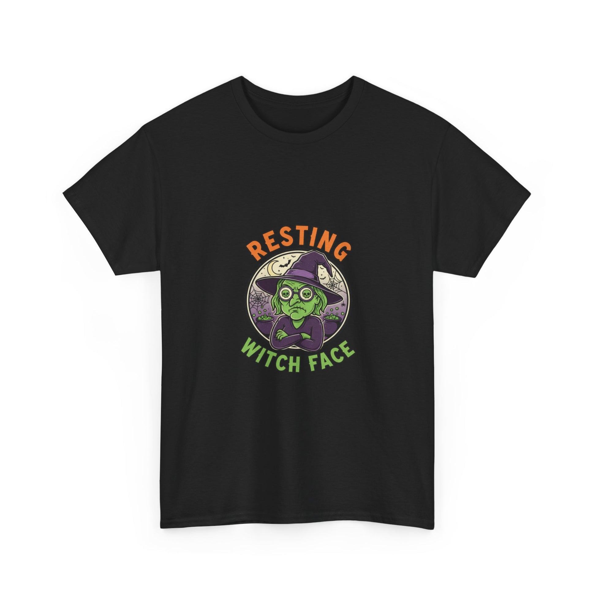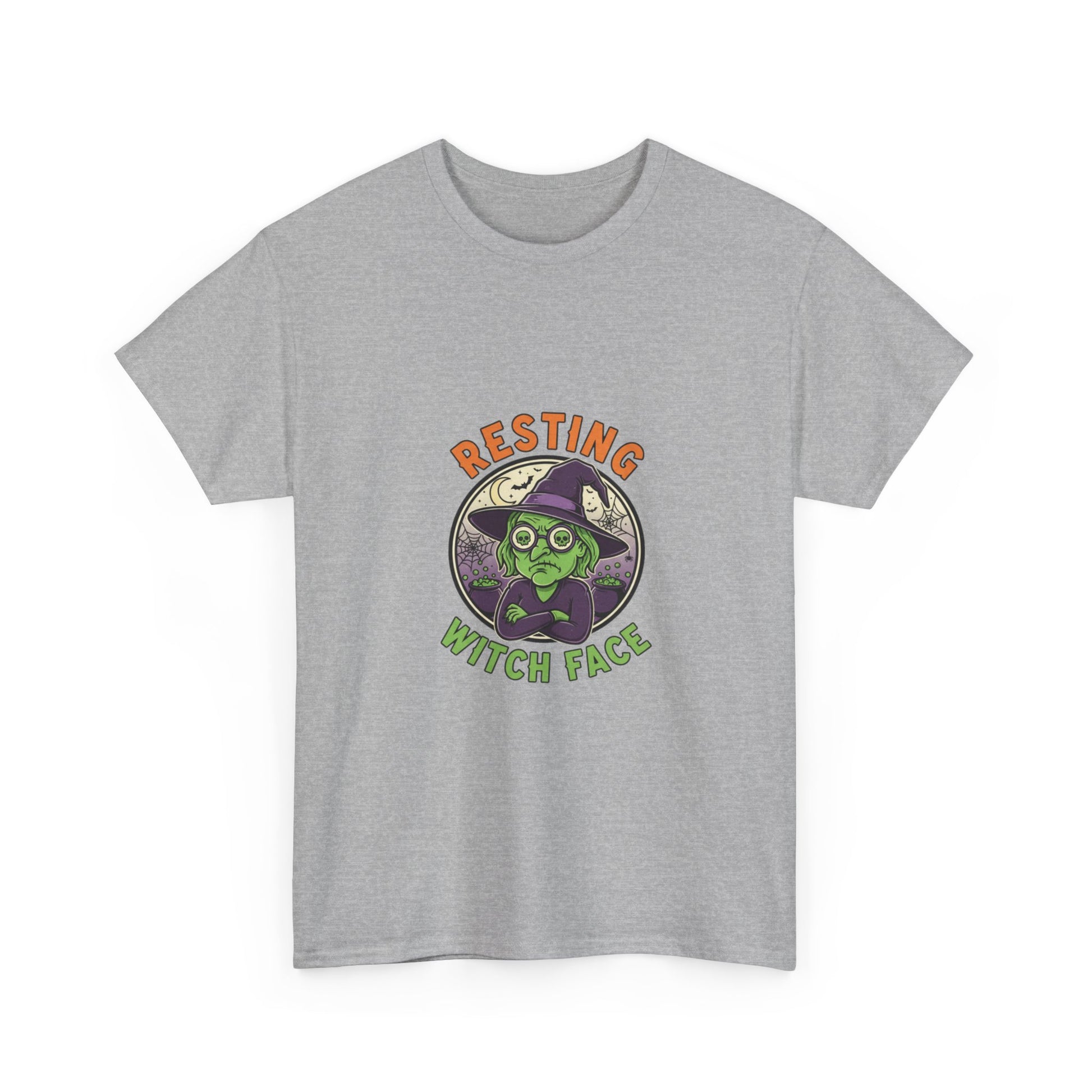 Resting Witch Face Unisex Heavy Cotton Tee, Funny Halloween T-Shirt, Spooky Apparel, Witch Theme, Gifts for Her